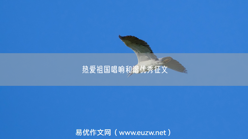 作为一中国人,作为一个中学生,作为祖国的未来、祖国的希望,请让我们把“热爱祖国,唱响和谐”作为自己的责任,从现在做起,从身边的点点滴滴做起,励志图强、刻苦努力,共同开创我们中华民族繁荣富强的未来,共同构建和谐社会,将中国建设得更加和谐、更加美好!