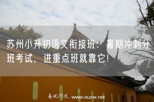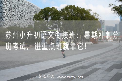 易优作文是有着近10年教学经验的中小学语文阅读写作培训机构。每年7-8月,苏州多所重点初中(如苏州中学园区校、星海实验初中等)都会组织分班考试。分班考试成绩直接关系到孩子能否进入重点班、配备优质师资。我们的衔接班专门针对分班考试设计,帮助孩子取得好成绩。 苏州语文阅读写作培训,就找易优作文吴老师 (线上、线下) 微信: y18118159898
