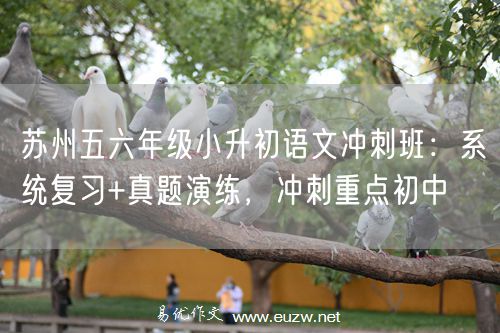 易优作文是有着近20年教学经验的语文阅读写作培训机构,专注提升中小学生语文能力。小升初是孩子求学路上的第一次重要选拔,语文成绩直接决定能否进入重点班。冲刺班专为五、六年级有志于名校的学生设计,系统复习+高强度实战,让孩子胸有成竹进考场。 苏州中考语文一对一辅导,易优作文吴老师专业、可靠(线上、线下) httPs://www.Euzw.net